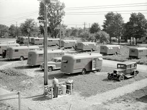 John Vachon Slop Sink June 1941 Erie County, Pennsylvania. “Each group of ten trailers in the FSA camp at Erie has a trailer service unit, water faucet, slop sink, and garbage pail”