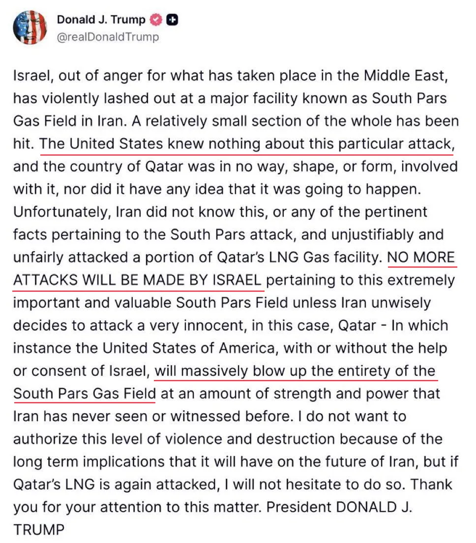 “I am not surprised by their action, however, because I always considered NATO, where we spend Hundreds of Billions of Dollars per year protecting these same Countries, to be a one way street — We will protect them, but they will do nothing for us, in particular, in a time of need. Fortunately, we have decimated Iran’s Military — Their Navy is gone, their Air Force is gone, their Anti-Aircraft and Radar is gone and perhaps, most importantly, their Leaders, at virtually every level, are gone, never to threaten us, our Middle Eastern Allies, or the World, again! Because of the fact that we have had such Military Success, we no longer “need,” or desire, the NATO Countries’ assistance — WE NEVER DID! Likewise, Japan, Australia, or South Korea. In fact, speaking as President of the United States of America, by far the Most Powerful Country Anywhere in the World, WE DO NOT NEED THE HELP OF ANYONE!”