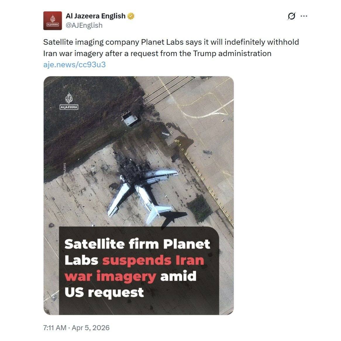 Participant“Satellite imaging company Planet Labs says it will indefinitely withhold Iran war imagery after a request from the Trump administration”