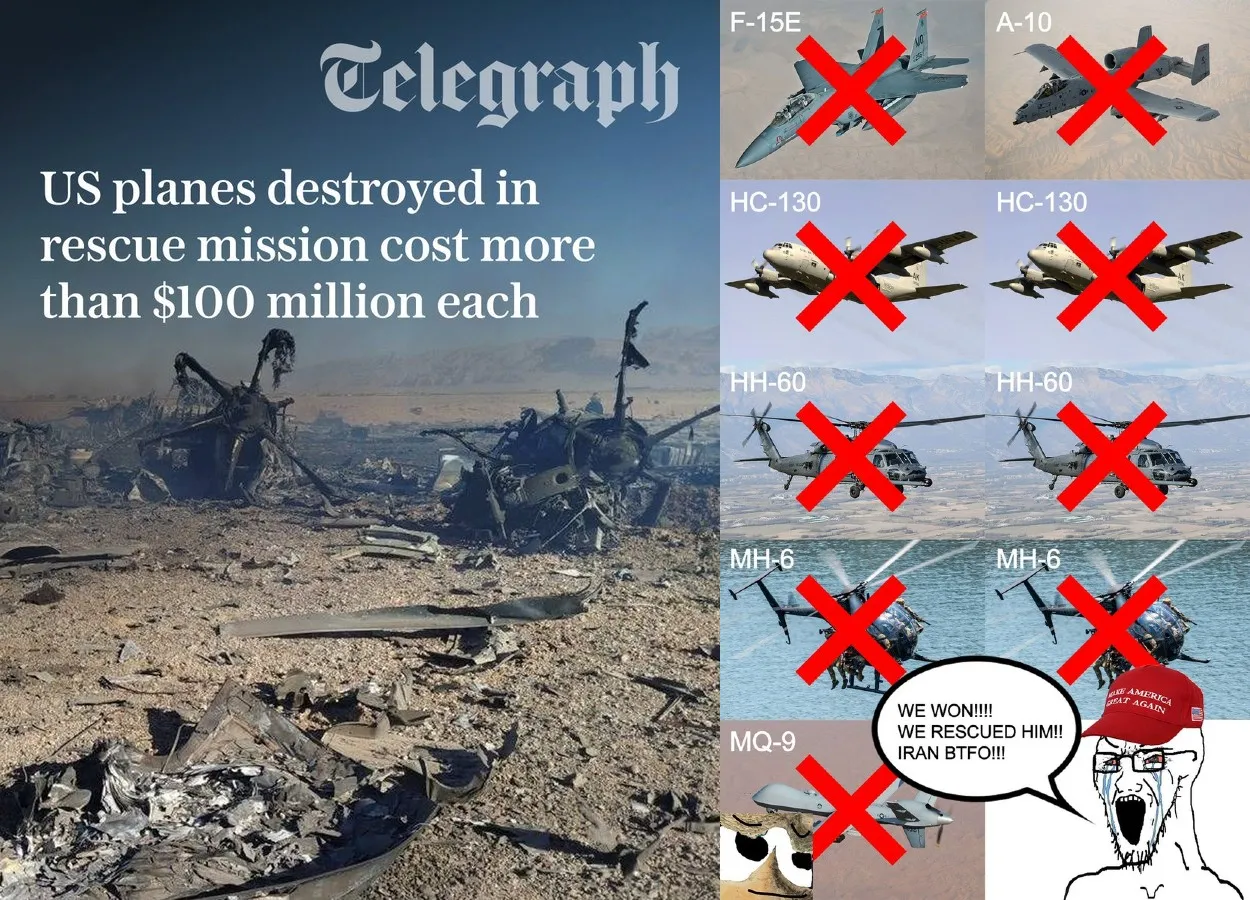 ParticipantIRGC announced that F15 Pilot is in IRAN while the US lost 9 aircraft & 20 servicemen in a rescue OP