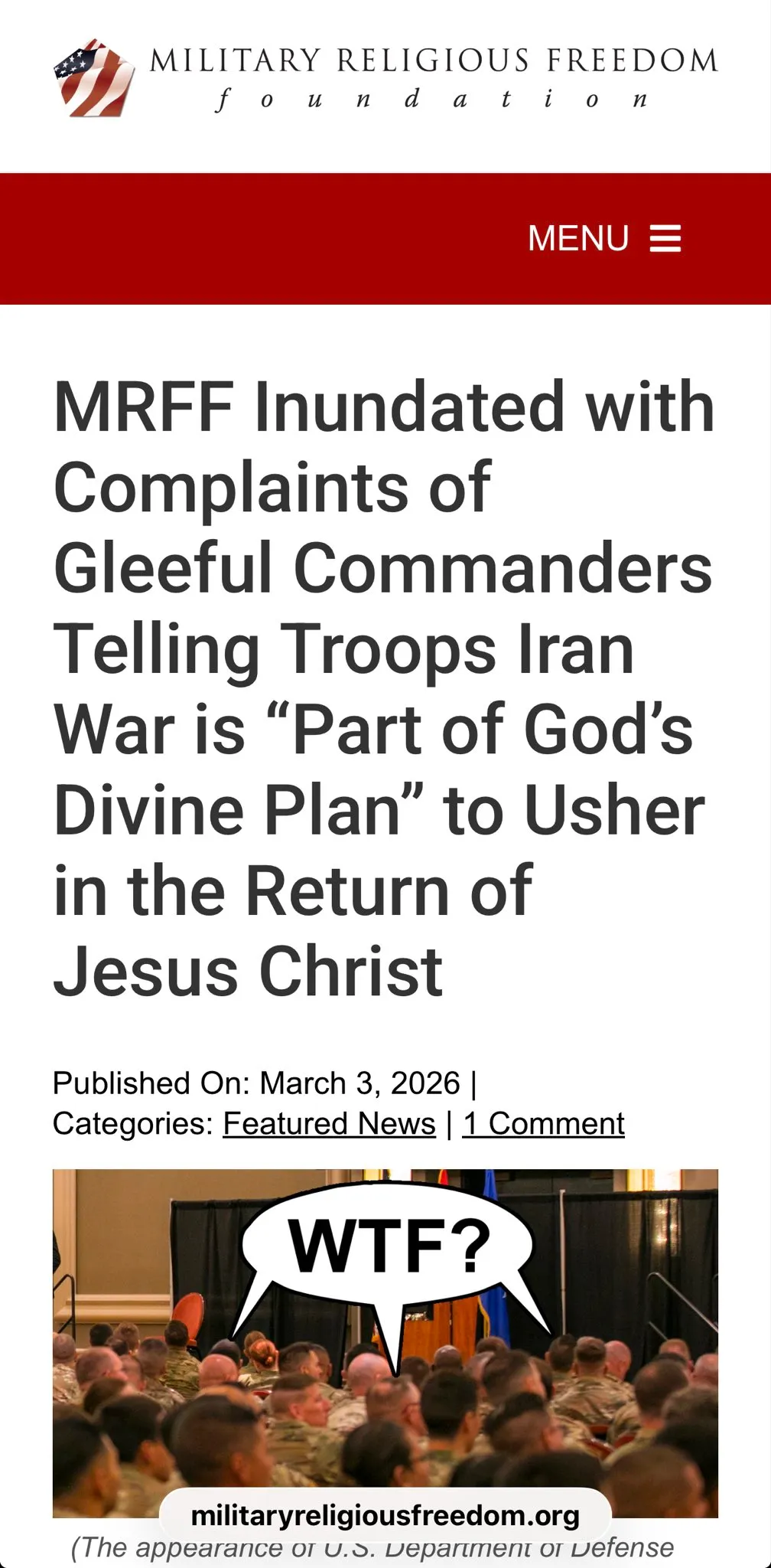 The Military Religious Freedom Foundation says it received hundreds of complaints. Every branch of the military. Coordinated messaging.