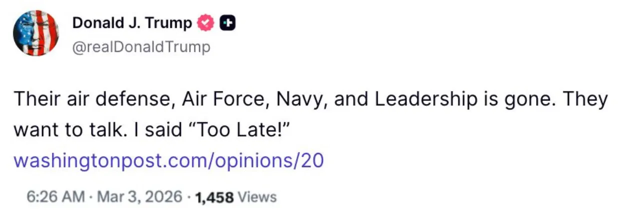 ““Iran doesn’t want to talk. Iran rejected the ceasefire on day one because they believe the June 2025 ceasefire was a strategic error.