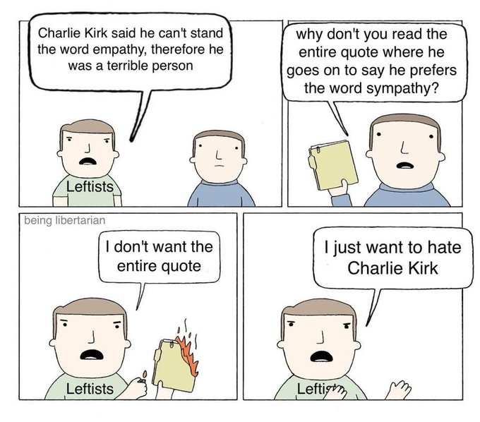 OF COURSE the left will scream that “you are the same” when you finally pick up the same kind of weapon. They want you unarmed. Almost in the same breath, in response to the Charlie Kirk assassination, the millisecond before his body hit the ground, they were demanding that normal people disarm themselves of this ideological weapon and LITERALLY physically disarm. Not a coincidence.