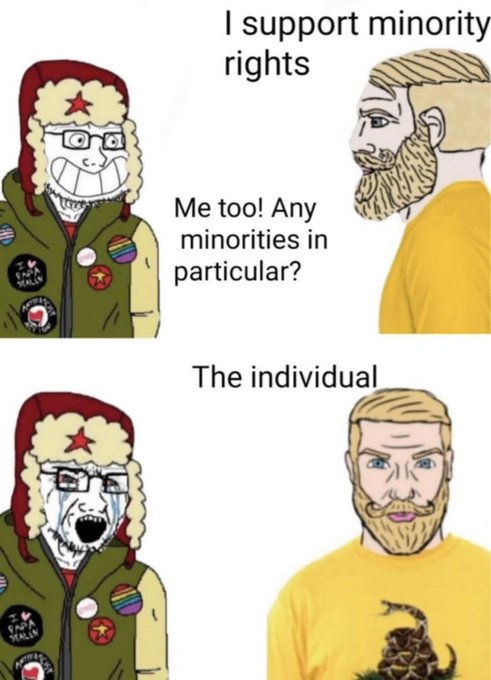 And when average everyday leftists try to shove shit down my throat, knowing, knowing I know they know, knowing I know they know I know, with that GLOATING look. Is it actually just gloating at the fuckery they are sending my way? Is it something gloating in front of me at what they can make this person do?