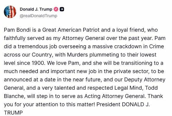 • Trump Fires Pam Bondi As Attorney General, Blanche To Be Acting AG’ (ZH)